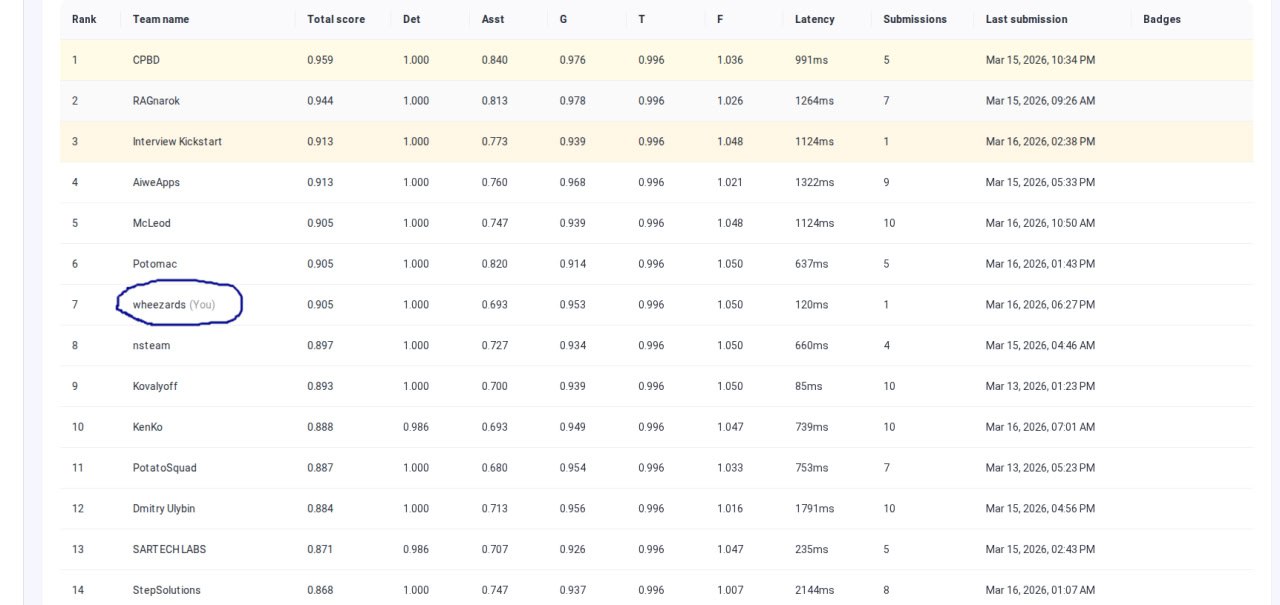 I think it's a big step for our team and it's very rewarding to get 7th place in one day of work. Out of 144 members with some non-zero submissions and 300 registered teams.