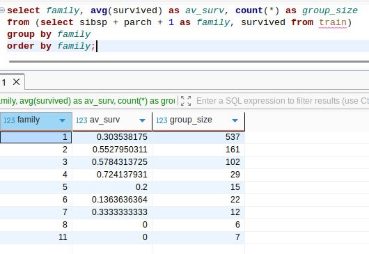 The first two queries show us the strength of these factors separately. The third uses the nested query technique to produce a derived factor, family size. One can see that these factors are useful, but the derived factor gives a stronger depletion/enrichment effect. This time, we were lucky enough to engineer a new feature.