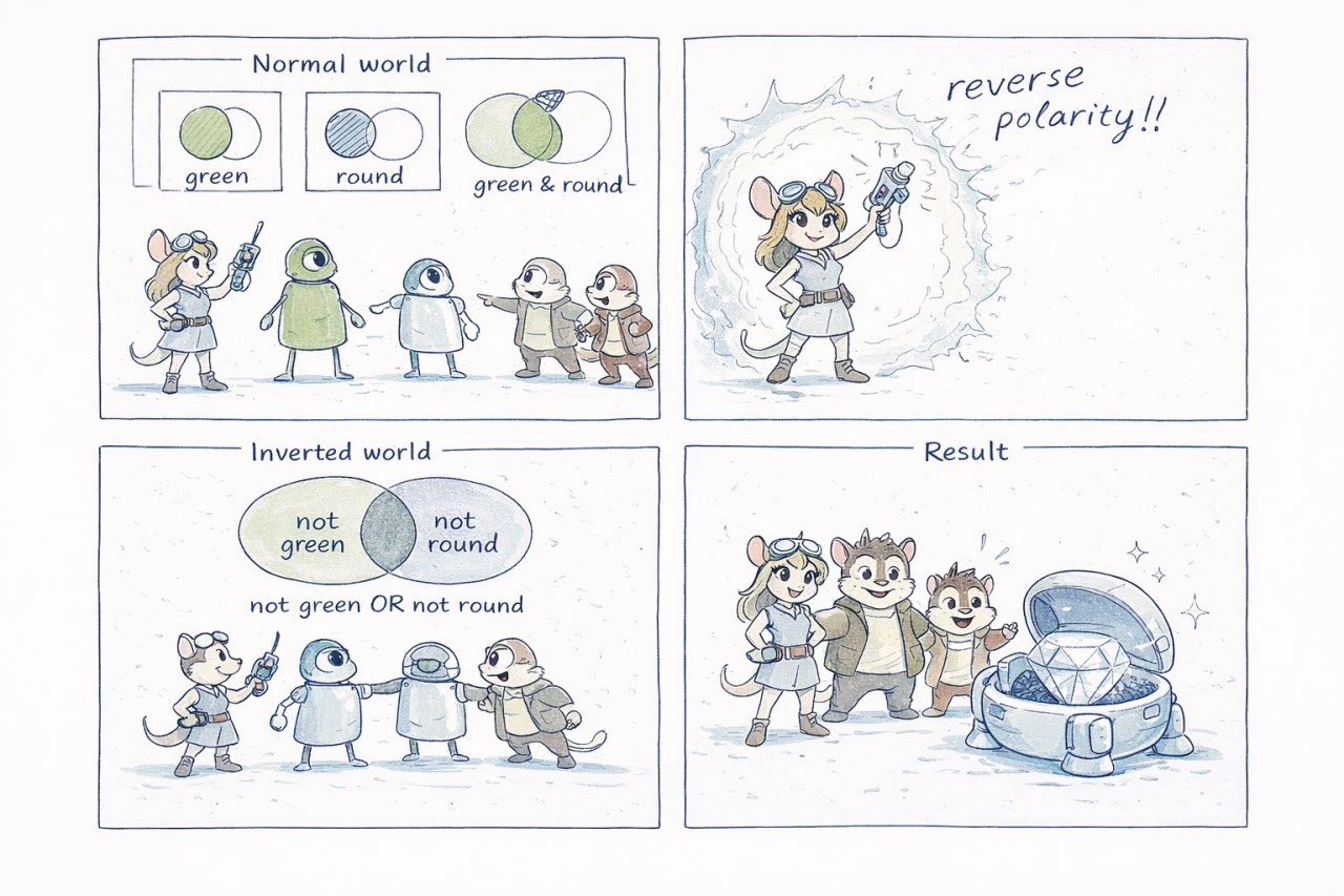 Чтобы инвертировать логическое выражение, инвертируйте каждый член и поменяйте местами или ↔️ и.